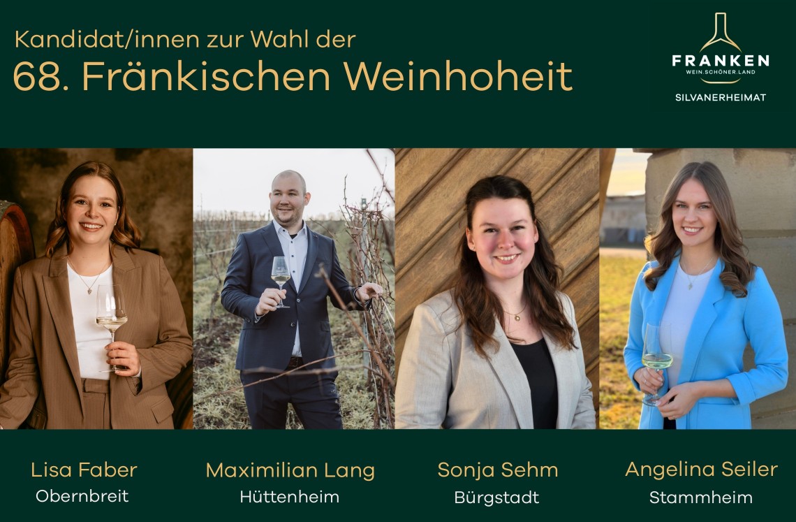 Am 13. März 2026 wird im Regentenbau Bad Kissingen die 68. Fränkische Weinkönigin gewählt. Vier weinbegeisterte, engagierte Menschen wollen Antonia Kraiß in das Amt als Fränkische Weinkönigin folgen und den Frankenwein und die Silvaner Heimat in der Region, bundesweit und darüber hinaus repräsentieren. Die Wahl erfolgt durch eine unabhängige Jury aus Persönlichkeiten der Weinwirtschaft, Politik und Gesellschaft. Die Siegerin oder der Sieger wird von Antonia Kraiß zur neuen Fränkischen Weinkönigin gekrönt bzw. zur Fränkischen Weinhoheit ernannt.